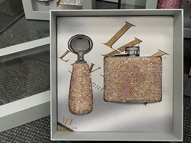 - Matching Hip Flask – Sleek, shimmering, and perfect for carrying your favourite sip in style.