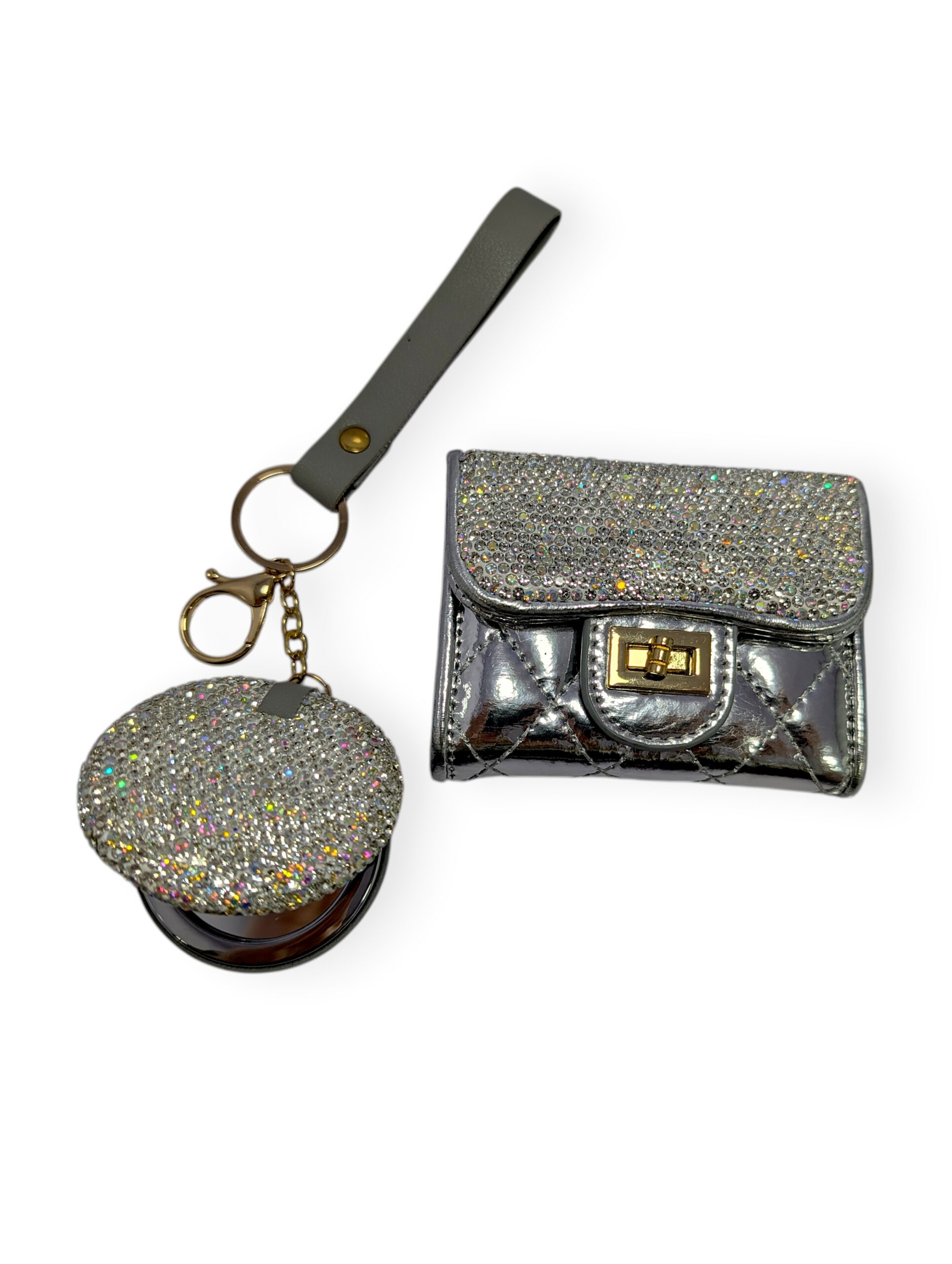 - Rhinestone Compact Mirror – A dazzling touch‑up essential that slips effortlessly into any handbag.