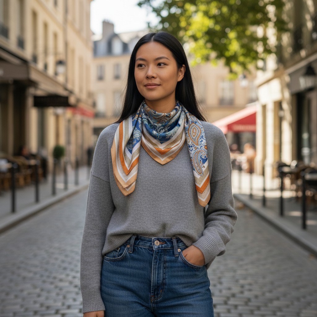 Measuring 90×90cm, it’s the perfect versatile accessory — wear it around your neck, style it as a bandana, tie it onto your handbag, or weave it into your hair for a chic finishing touch. Lightweight, luxurious, and endlessly wearable, this scarf adds instant polish to any outfit.