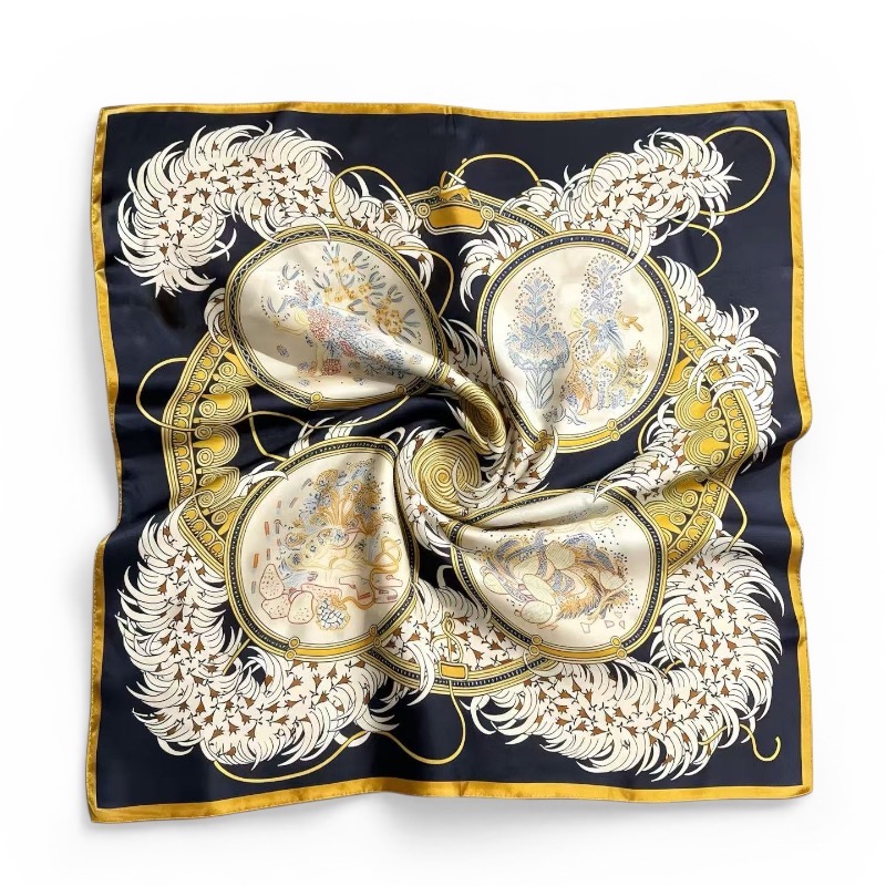 Mulberry Silk Scarf Navy/Yellow bordered floral