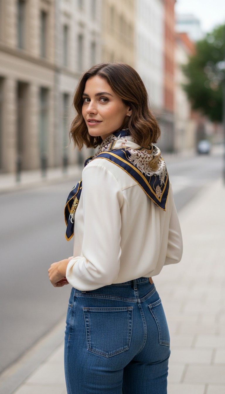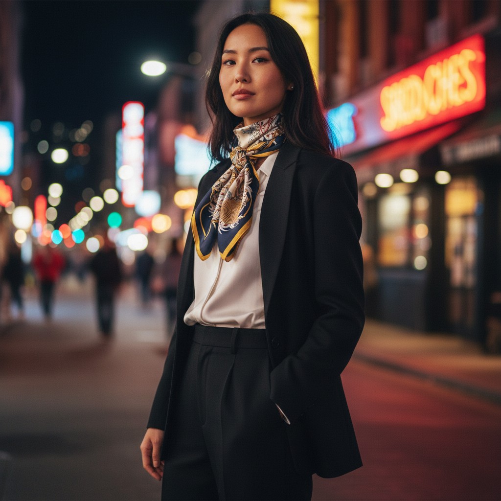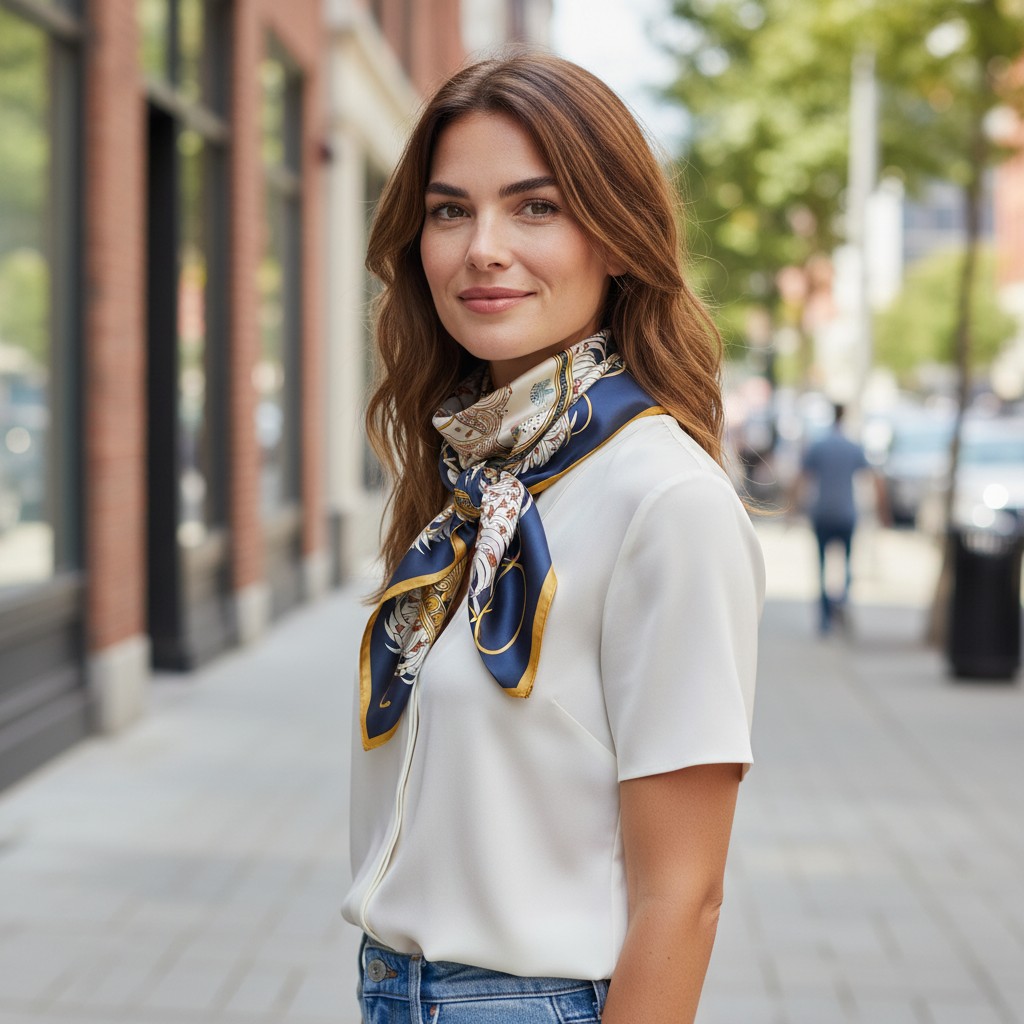 Mulberry Silk Scarf Navy/Yellw