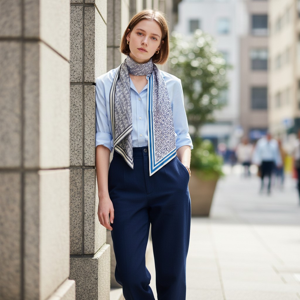 / Blue Reverse Wool/Silk Scarf
