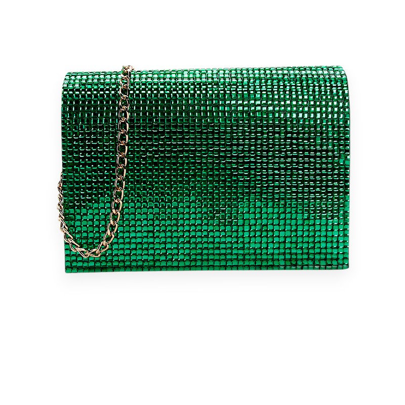 Sequin with chain and on the inside close with clutch with an inside pocket of evening bag.