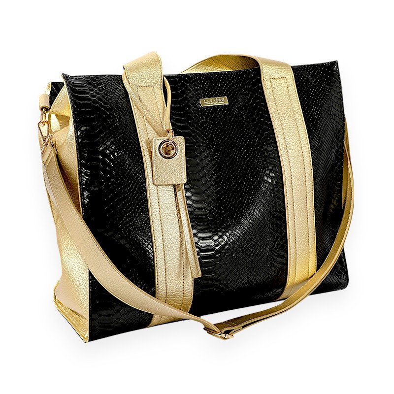 Black Luxe Croc Printed and Gold Metallic Straps Tote