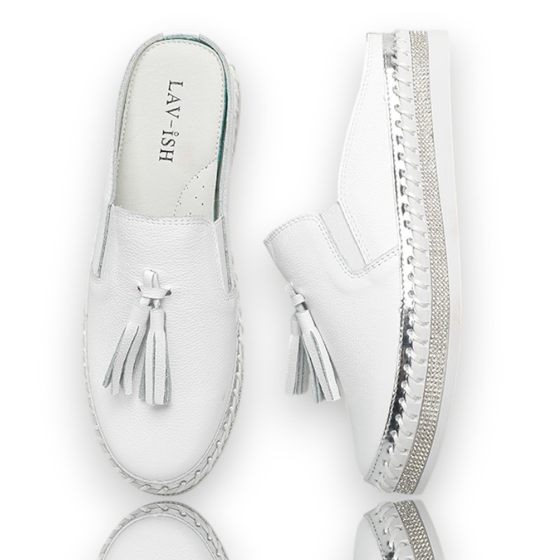 Lav-Ish Leather Slides with Tassel Material : Genuine Leather With 4 row bling rubber sole