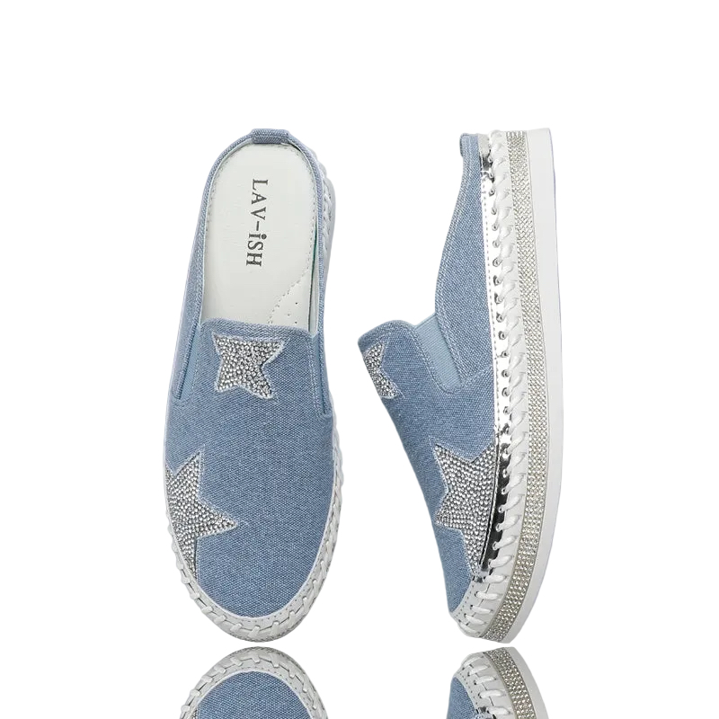 Lav-Ish Light Denim Blue Slide with Bling Star