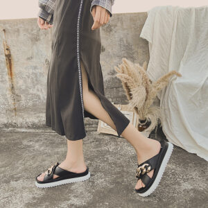 Lav-Ish PU Leather Crossover Slides.