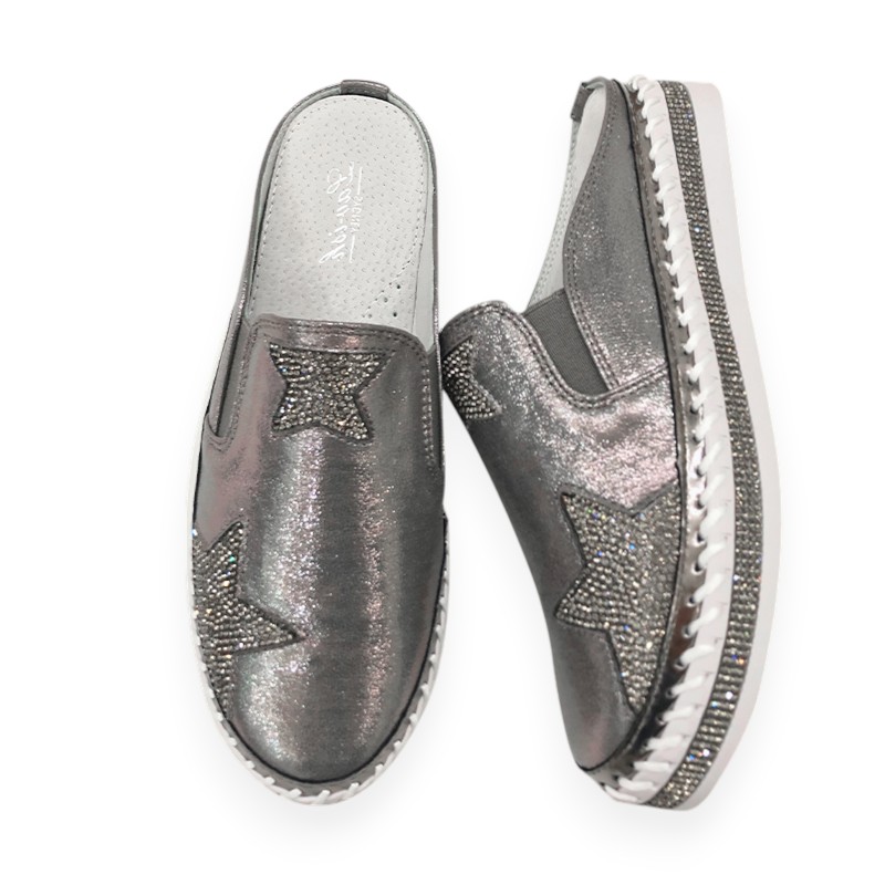 Lav-Ish Pewter Slides with Bling Star