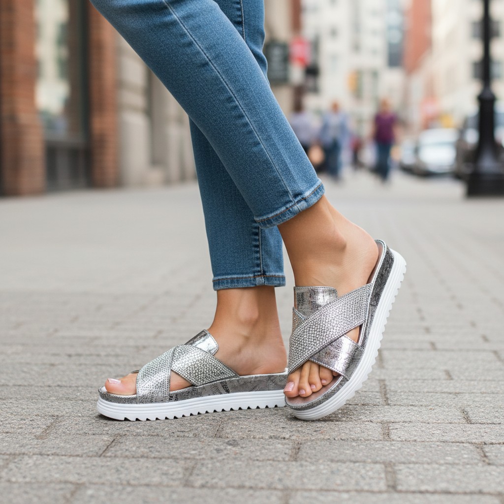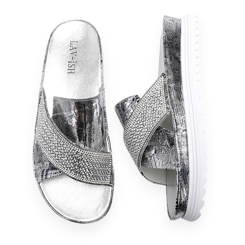 Silver Newspaper Print Sandals
