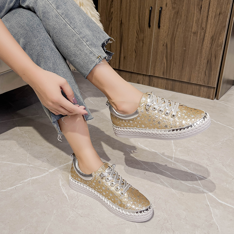 Gold Twinkle Laceup Sneakers