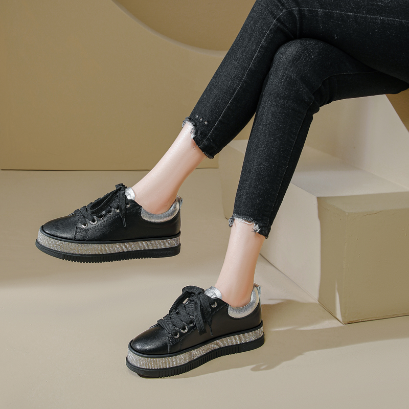 Step into luxury with these black sneakers featuring 8 rows of sparkling crystals around the sole and two diamante lace eyelets for a touch of glam. Perfect for elevating your casual style.