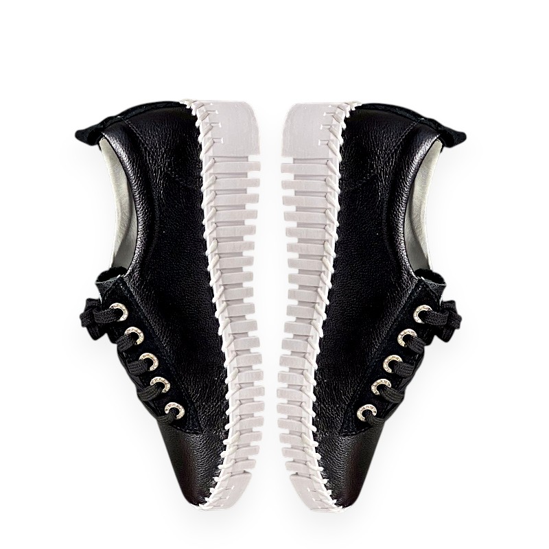 A sleek and stylish take a platform sneaker, featuring a slimming design, with an elegant, pointed toe, stitched soles, and sparkling diamante eyelets. Crafted from genuine leather with a durable rubber sole for all-day comfort.